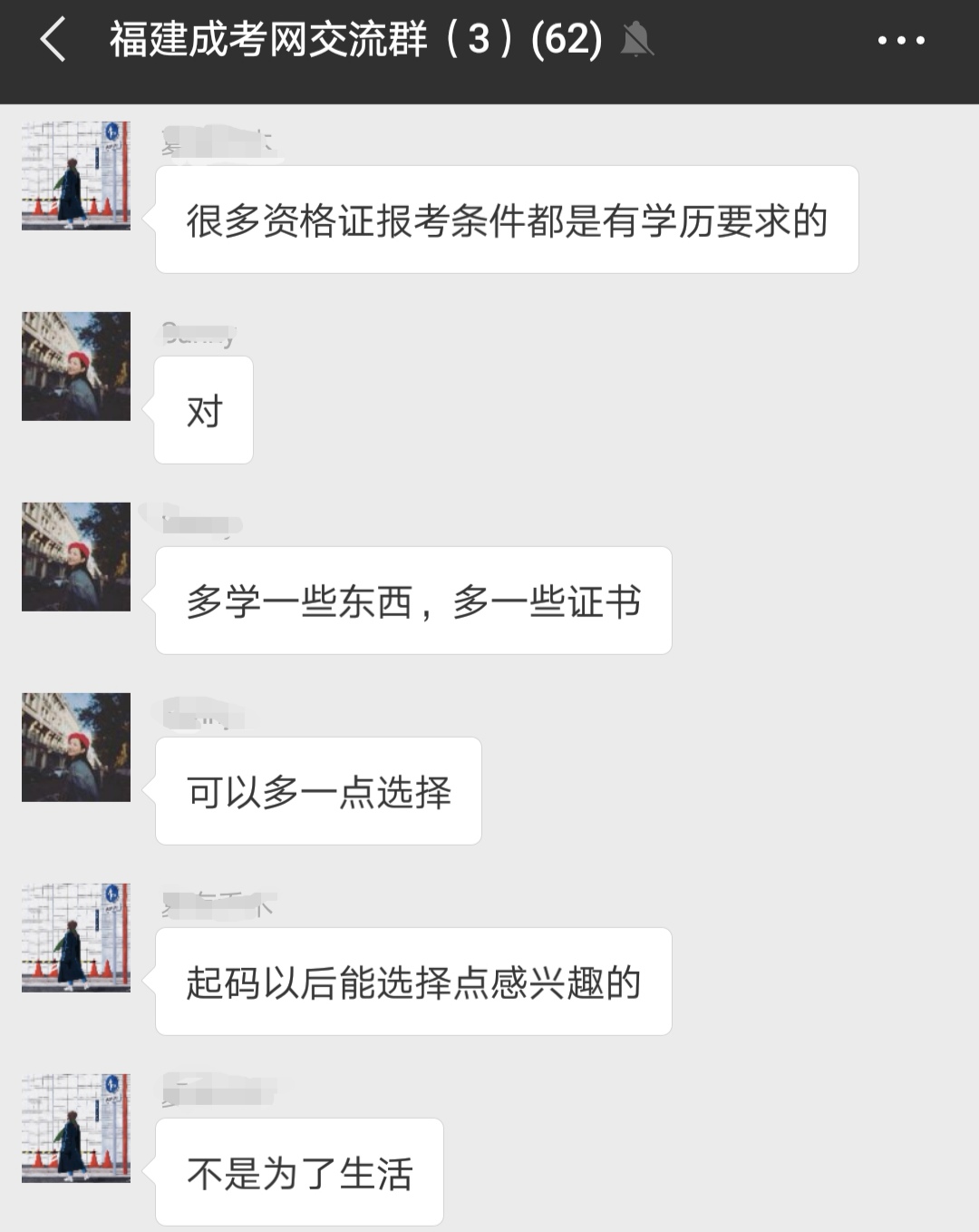從考生們的交流中,我們可以發(fā)現(xiàn),大家報考成考都是有原因的: