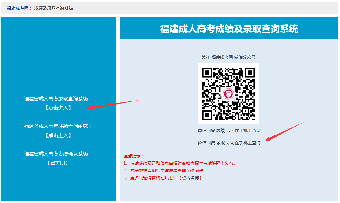 以上就是有關福建成人高考錄取查詢電腦端查詢流程的簡要介紹,具體以考試院當年相關通知公告為準。更多成考資訊,敬請關注網站及公眾號最新通知!