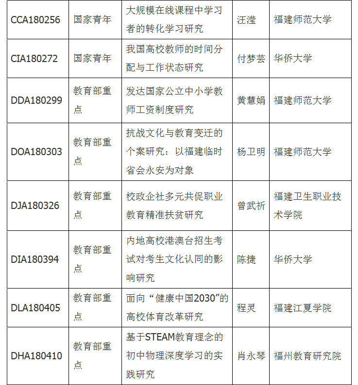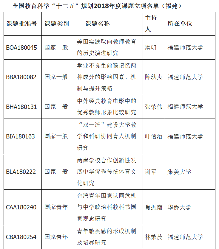 本文關鍵詞: 全國教育科學   立項名單   福建