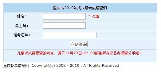 所在位置:福建成考網(wǎng) > 教育資訊 > 全國教育資訊 > 2019年重慶市成人高考成績查詢11月21日起!