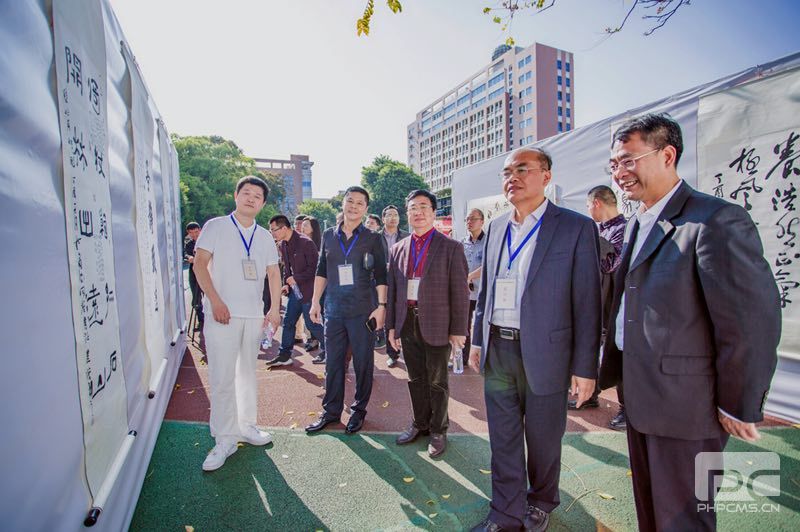 活動還展出了部分師生書法和楷書大賽的獲獎作品,參加活動的莆籍書法家還現(xiàn)場揮毫潑墨,留下墨寶。