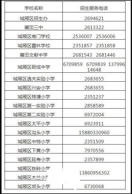 十、城廂區招生辦及城區學校招生服務電話